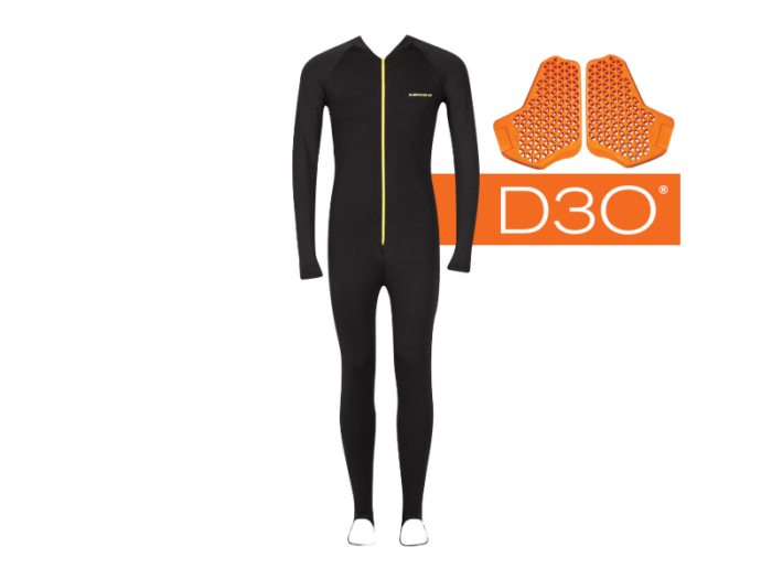 MOTO-D Coolmax Motorcycle Undersuit w/ D30® Chest Protector wicks Moisture and Perspiration to keep you COOL. High Stretch Fit for Maximum Range of Motion. Full Length Two-Way Zipper, Comfortable Footstraps (keeps suit in position). Slide in and out of Motorcycle Leathers, Jackets, and Pants with Ease. Most Comfortable Motorcycle Undersuit specifically designed for Motorcycle Riding, will not Bunch Up or Separate like “Tight Workout Compression Gear”.